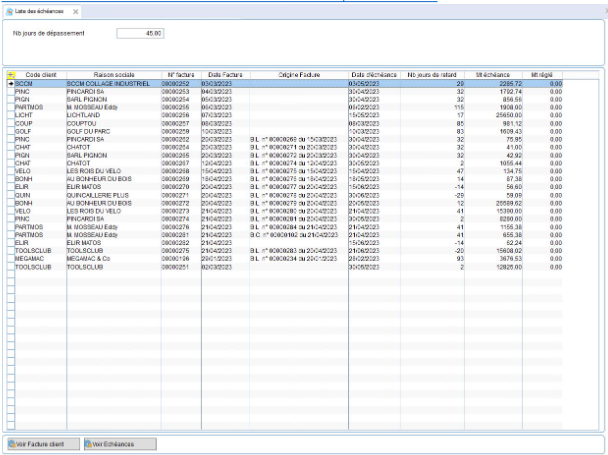 Alerte d'affichage à chaque ouverture d'oxygène, d'un état des clients dont la date d'échéance des factures (N jours à définir par l'utilisateur) sont dépassées,
